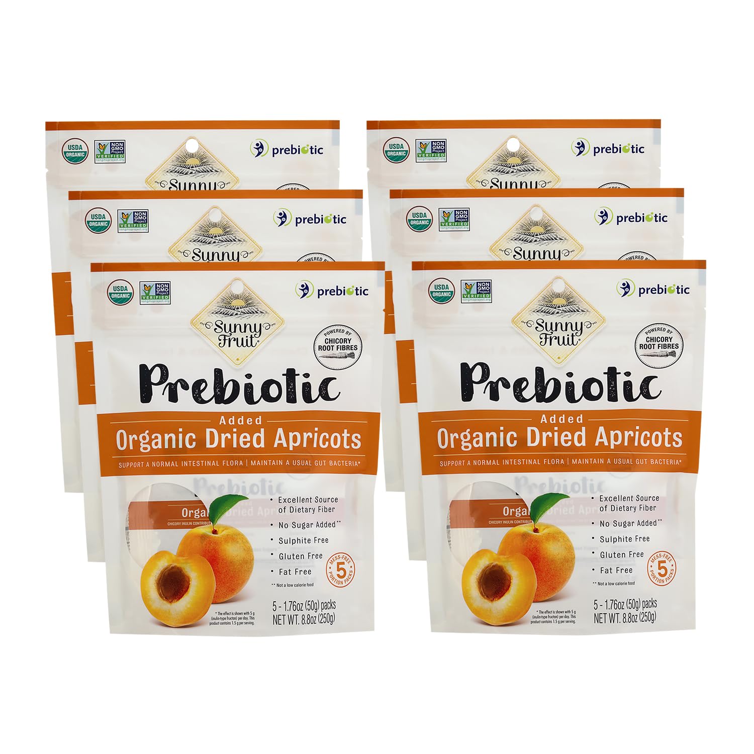 Sunny Fruit Organic Prebiotic Apricots - 6 Bags (30 Individual Portion Packs) | Convenient Snack Packs with Prebiotic Fiber | ORGANIC, NON-GMO, KOSHER, HALAL, NO PRESERVATIVES, NO SUGAR ADDED