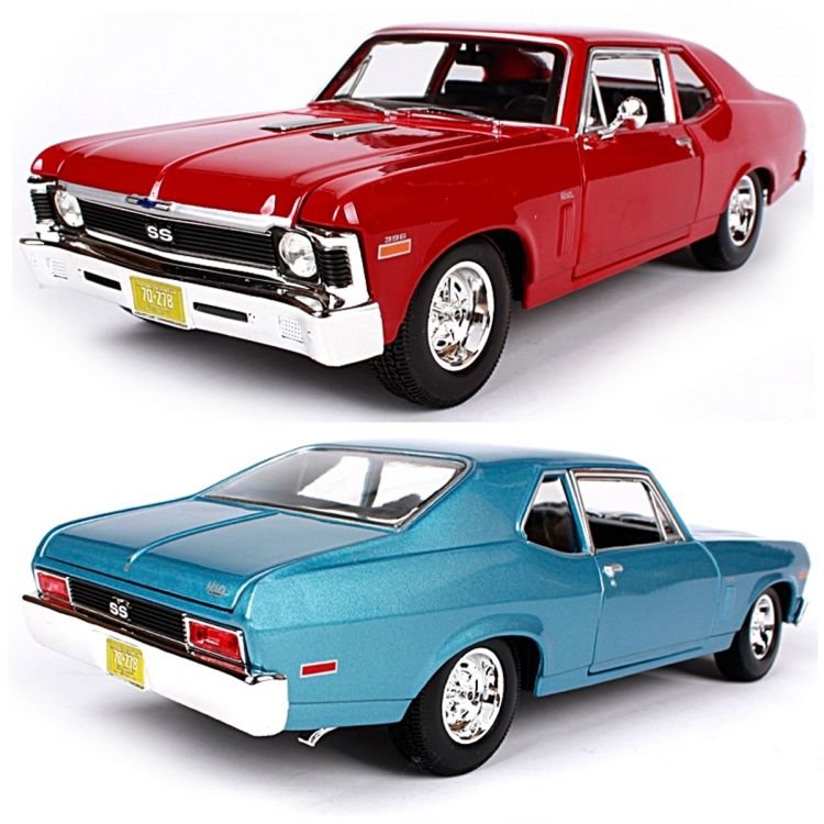 1:18 Maisto 1970 Chevrolet Nova SSMaisto 1:18 refers to scaled-down replicas of the real cars and motorcycleswith which Maisto has a license agreement. Metal body and plastic parts are used in the Maisto 1:18 collection. This collection of Maisto mostly features opening doors, opening hoods,opening trunks and detailed chassis. Some parts may not be opened in some models.The vehicles in the Maisto 1:18 collection are mounted on plastic stands.IMPORTANT NOTE:The product has 2 color options: Blue and Red.Please indicate your color preference in your order.Otherwise, any color from stock If you have not specified a color preference and still want to change the color of the product you receive, you must pay the round-trip shipping fee. Age Group: 3 Years +Barcode: 090159311324Item No: 31132Box Dimensions: 34 x 17 x 13 cm