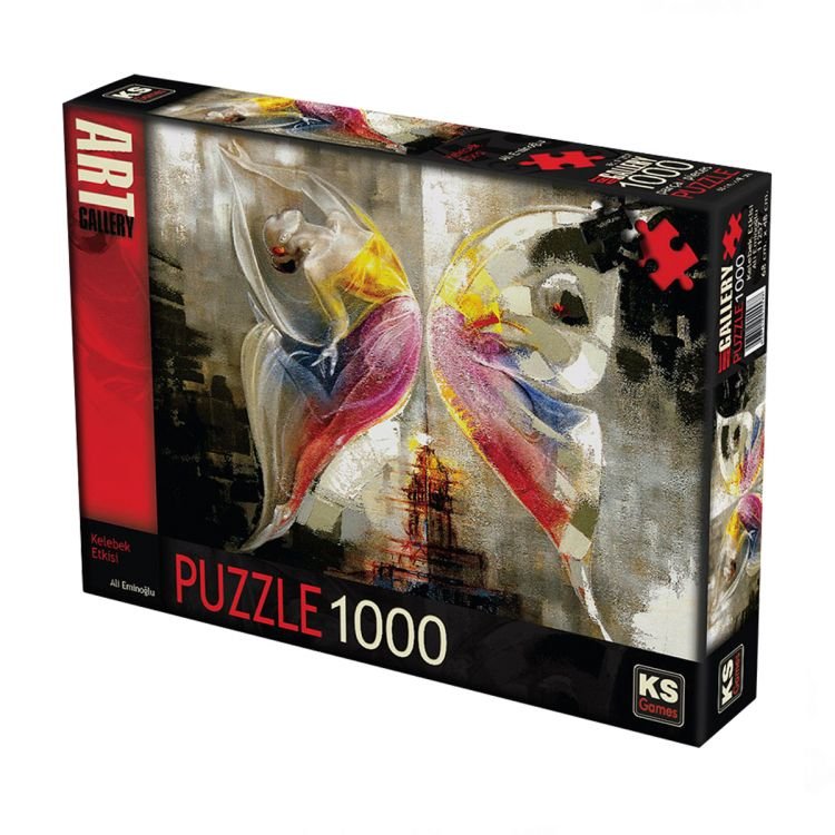 1000 Piece Butterfly Effect PuzzleKs Games products are produced from recycled, environmentally friendly thick cardboard.Each piece is unique and fits perfectly into its place.Special rough Thanks to its surface, it does not glare and provides less eye fatigue.Finished Puzzle Dimensions: 68 x 48 cmHelps the development of hand and eye coordination.Develops fine motor and gross motor skills.Develops problem-solving skills.Develops shape recognition and visual memory.Age Group: 3+ YearsBarcode: 8697418015577Item No: 11257Box Dimensions: 38 x 28 x 7.5 cm.Deci Value: 3