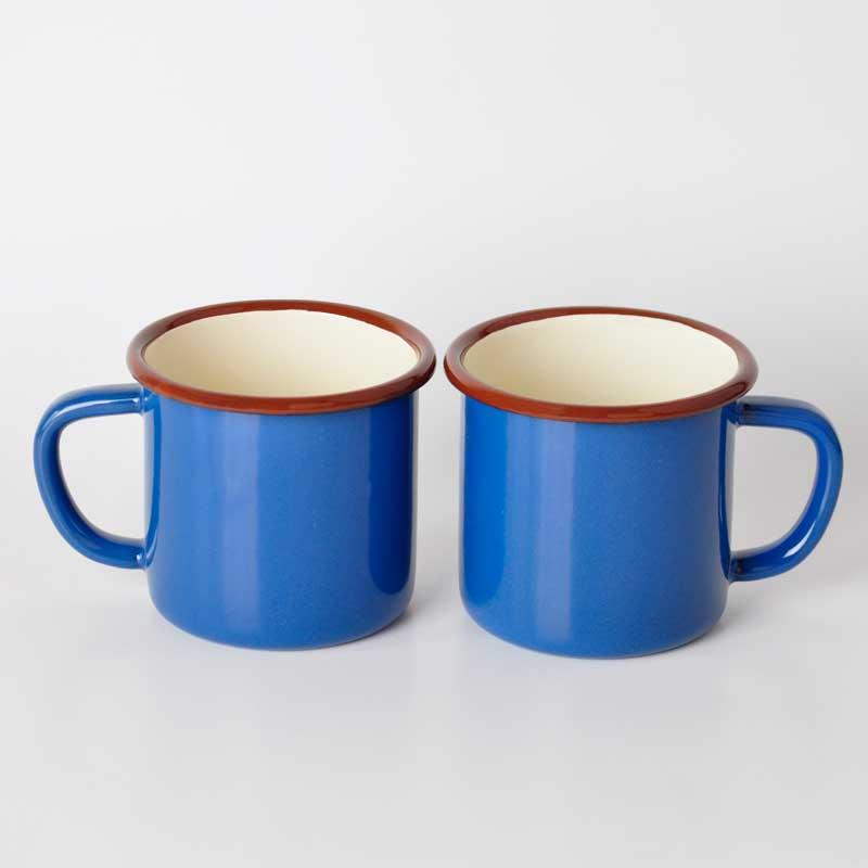 2-Piece Enamel Mug Navy Blue Dimensions: 8.5 x 8.5 cm Color: Inner cream Outer Navy Blue /Ring Brown Capacity: 380 ml. Material: Sheet steel / enamel