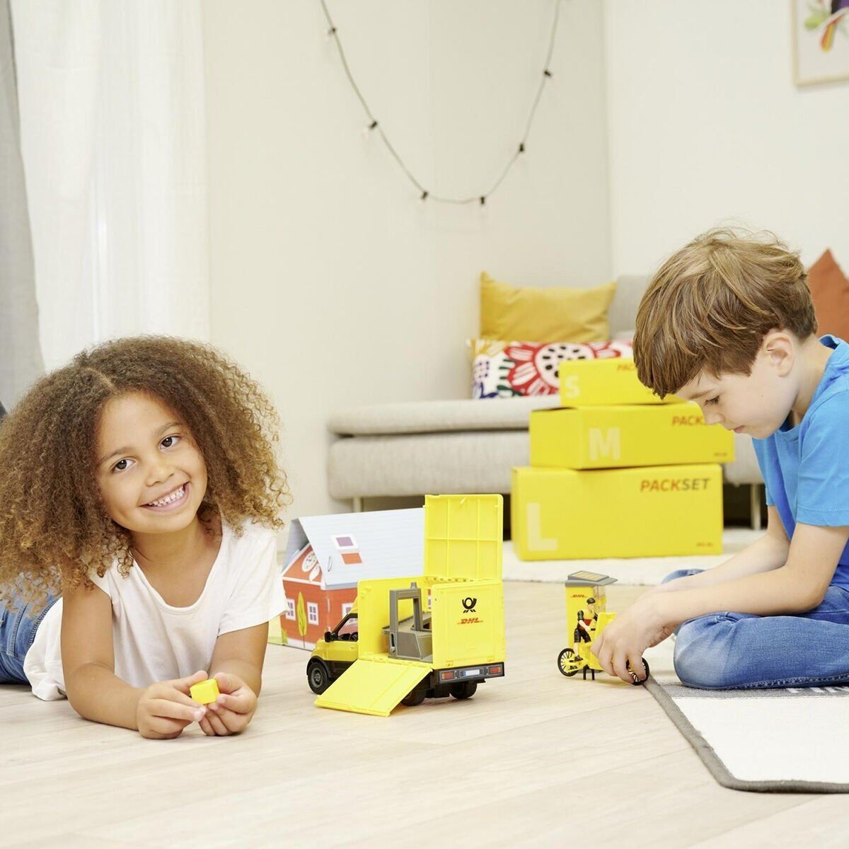 Recreate the daily life of a parcel carrier or postwoman. With the detailed DHL parcel vehicle set, children aged 3 and up can role-play a real parcel delivery person.