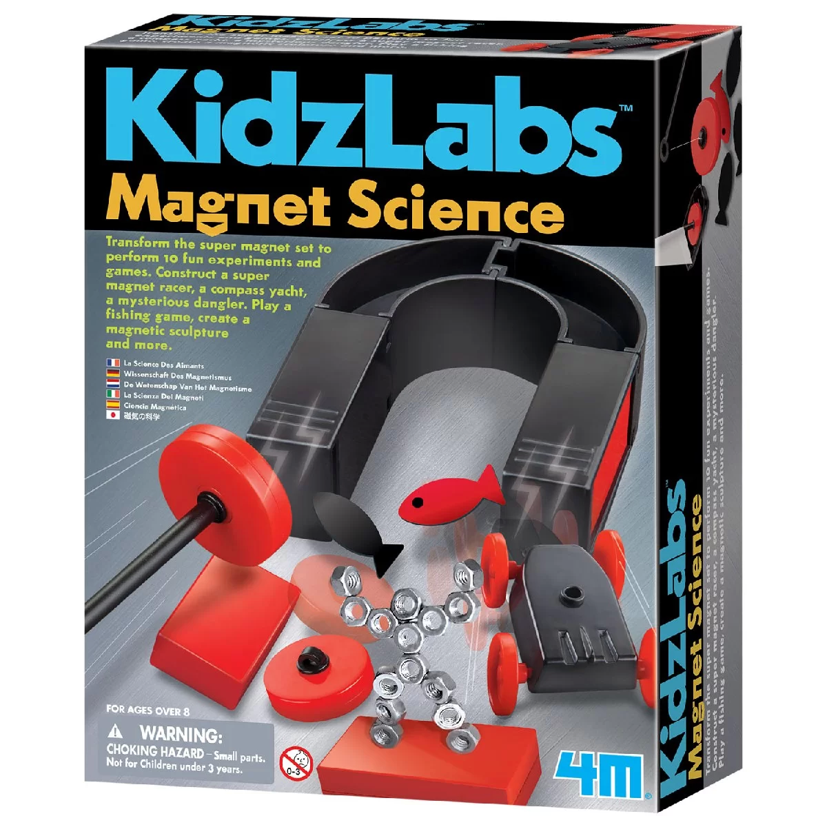 4M Magnet Science Experiment Kit Are you ready to explore the science of magnets? A magnet is an object that attracts magnetic materials. For example, a magnet can attract small pieces of iron. Which substances are attracted to a magnet? Which substances are repelled by it? In this kit you will discover the effective field of the magnet by doing various experiments! Thanks to this kit, you will learn about the magnetic field of the magnet by designing a racing car, a table UFO, a magnetic yacht, a mysterious pendent, a levitron and a magnetic sculpture! Included in the kit; 2 super powerful Bar magnet, 2 ring magnets, 1 set of magnet holders (can be mounted on a magnet bar or U-shaped magnet), 1 car/boat chassis, 4 wheels, 1 long axle, 1 short axle, 1 rod/yacht pole for fishing rod, 1 fishing rod connection, 2 ring magnet connections, magnetic fish, 15 metal screw nuts, 1 roll of thread, fun facts and principles of magnetism and detailed assembly and play instructions. Please read the detailed user manual included in the kit carefully. Box Dimensions: 23 x 19 x 7 cm. Age Group 8+