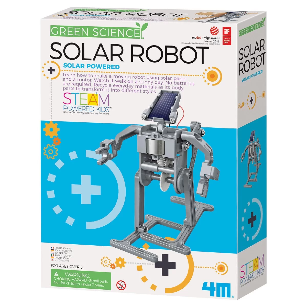4M Solar Walking Robot Kit Are you ready to explore solar energy with the Solar Robot? What does Solar Robot mean? Another name for a solar robot is solar robot. The sun is important for our world because it is a renewable energy source. You will use a motor and a solar panel in the construction of the solar robot. Thanks to the solar panel, the light from the sun will be converted into electricity and the robot will work on its own. Your solar robot does not need batteries and is an environmentally friendly robot. It can also perform simple tasks for you. The solar robot's features aren't over yet! You can turn the solar robot into a dinosaur or a monster if you want. Take your robot out for a walk on a sunny day and watch the sunlight convert into electricity. enjoy the moment! The kit includes; solar panel, solar panel holder plate, support arm, geared chassis body with motor and equipment installed, 2 arms (right and left), 2 foot connections, 2 chassis template support clips, washer screws, screws. Also required is a small toothed screwdriver, 1 empty paper cup and 2 forks, but they are not included in this kit: There is a detailed user manual about the construction and use of the Solar Robot in the kit. Read carefully. Box Dimensions: 30 x 23 x 8 cm. Age Group: 5+ Years