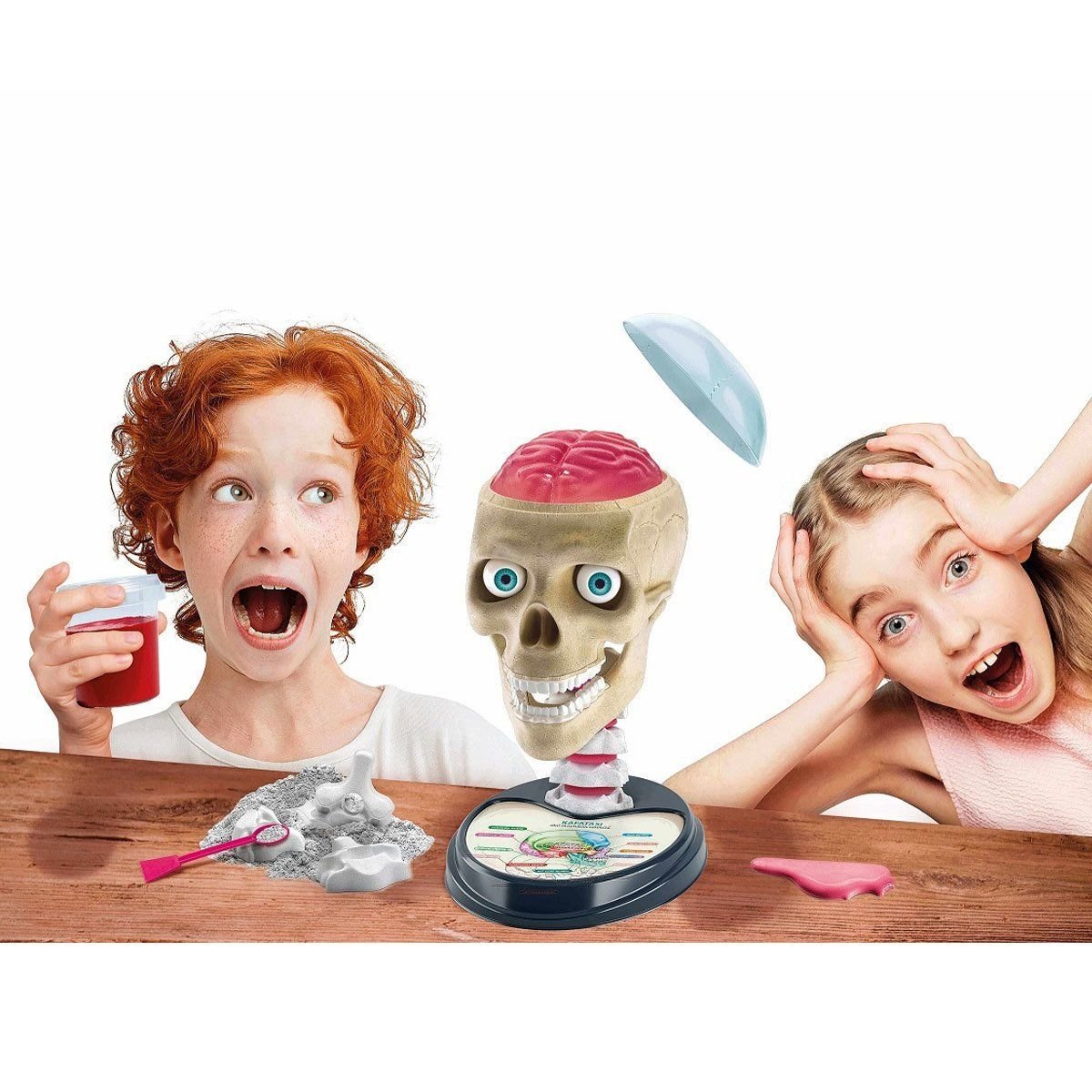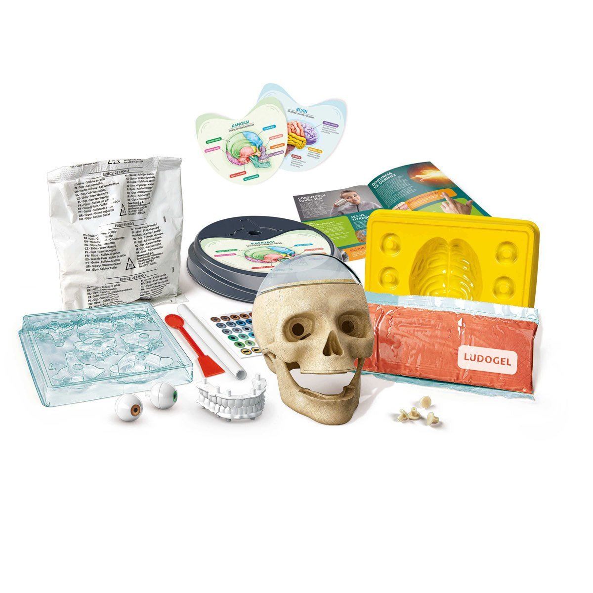 It includes a skull, two brain hemispheres, teeth and eyeballs to assemble for an ultra-realistic play experience, and plenty of materials to touch and handle as if they were real organs.