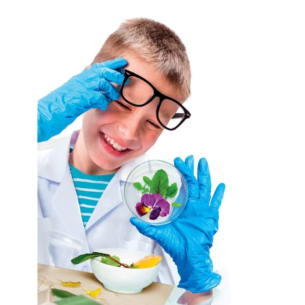 A wealth of instrumentation is provided for observing the world around us: plastic slides, glasses, pipettes, and magnifying glasses.