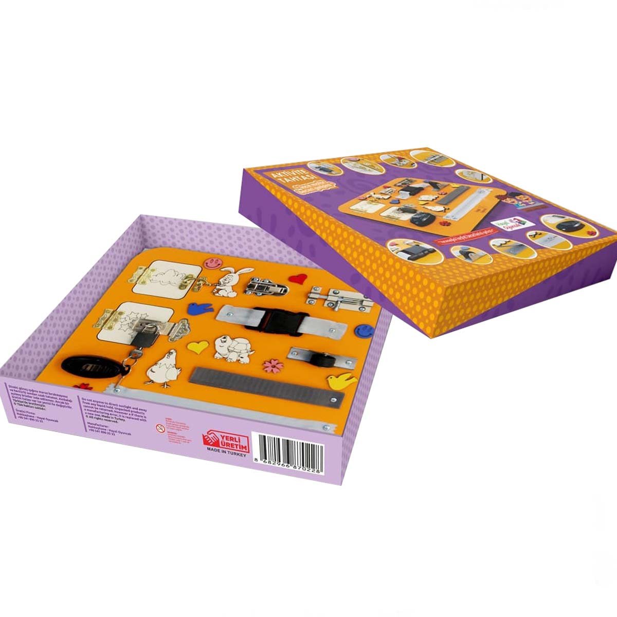 Activity Board Many toys can develop the fine motor skills of babies and toddlers. For school-aged children, board games consisting of pieces that need to be collected and accumulated are ideal for developing these skills. The activity board game is a brain game that focuses on the grasping movement used in writing and uses fine motor skills. It develops your child's manual skills in a positive way. WHAT ARE FINE MOTOR SKILLS? Fine motor skills, These are the motor skills required for the development of self-care activities such as brushing teeth, using cutlery, opening box lids, dressing, as well as academic-oriented skills such as painting, writing, cutting, pasting and using a pencil. Age Group: 2+ Years Barcode: 8682966870228 Item No:870228 Box Dimensions:34 x 30 x 6 cm. Deci Value: 2