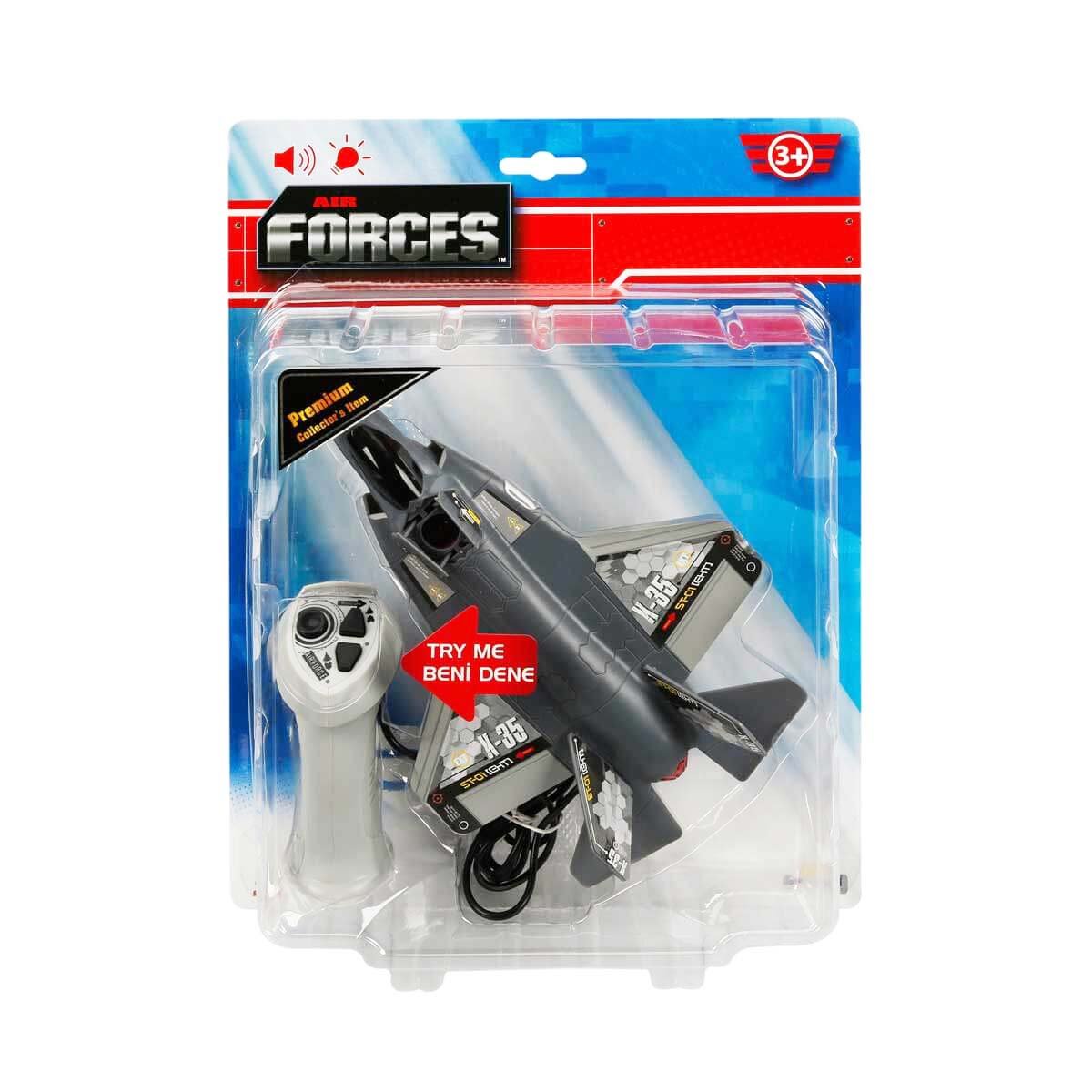 Air Forces Wire-Controlled X-35 Jet with Sound and Light Get ready for fun-filled games with the Air Forces Wire-Controlled X-35 Jet with Sound and Light! The Air Forces jet plane with sound and light effects is wire-controlled. You can move it on the ground using the directional keys. You can either add the 24 cm. long jet plane to your collection or play fun games by developing your imagination. Moreover, it is much closer to the real one with its detailed design of the helicopter. The package includes 1 Air Forces X-35 jet and 1 cable remote control. It works with 2 x 1.5V AAA batteries. Batteries are included in the box. Age Group: 3+ Years Barcode: 4892664297263 Item No: S00029726 Box Dimensions: 33 x 26 x 8 cm. Desi Value: 2