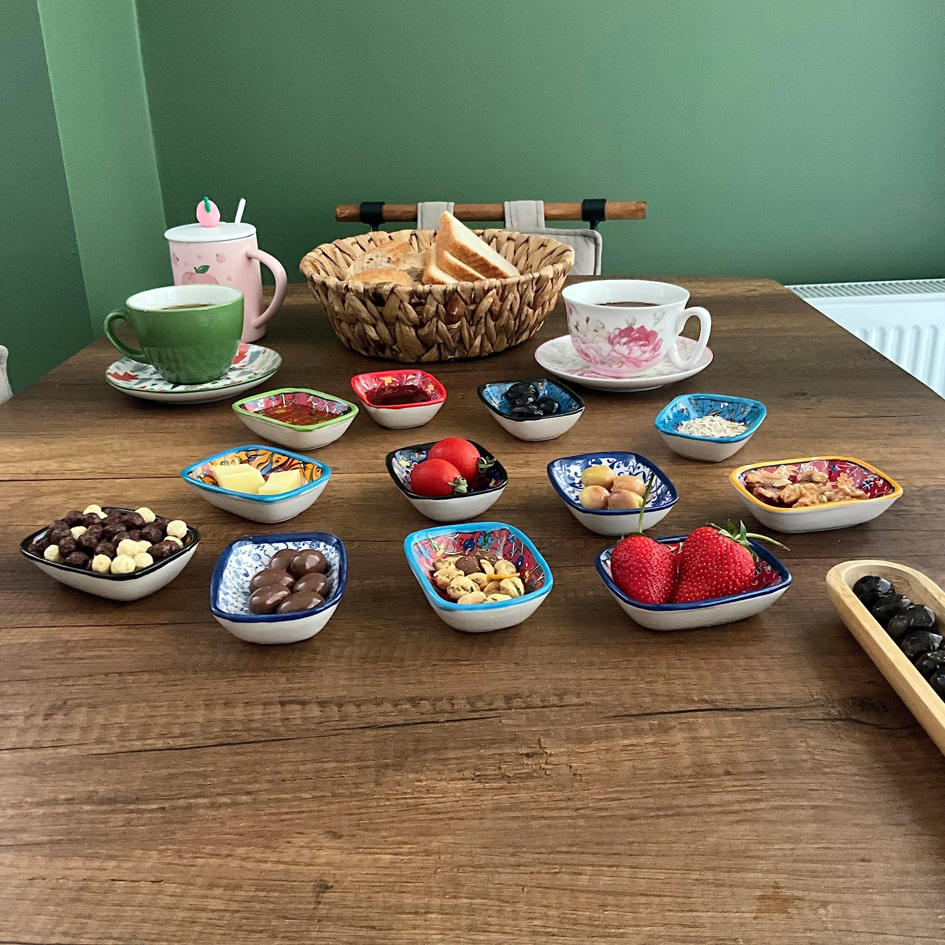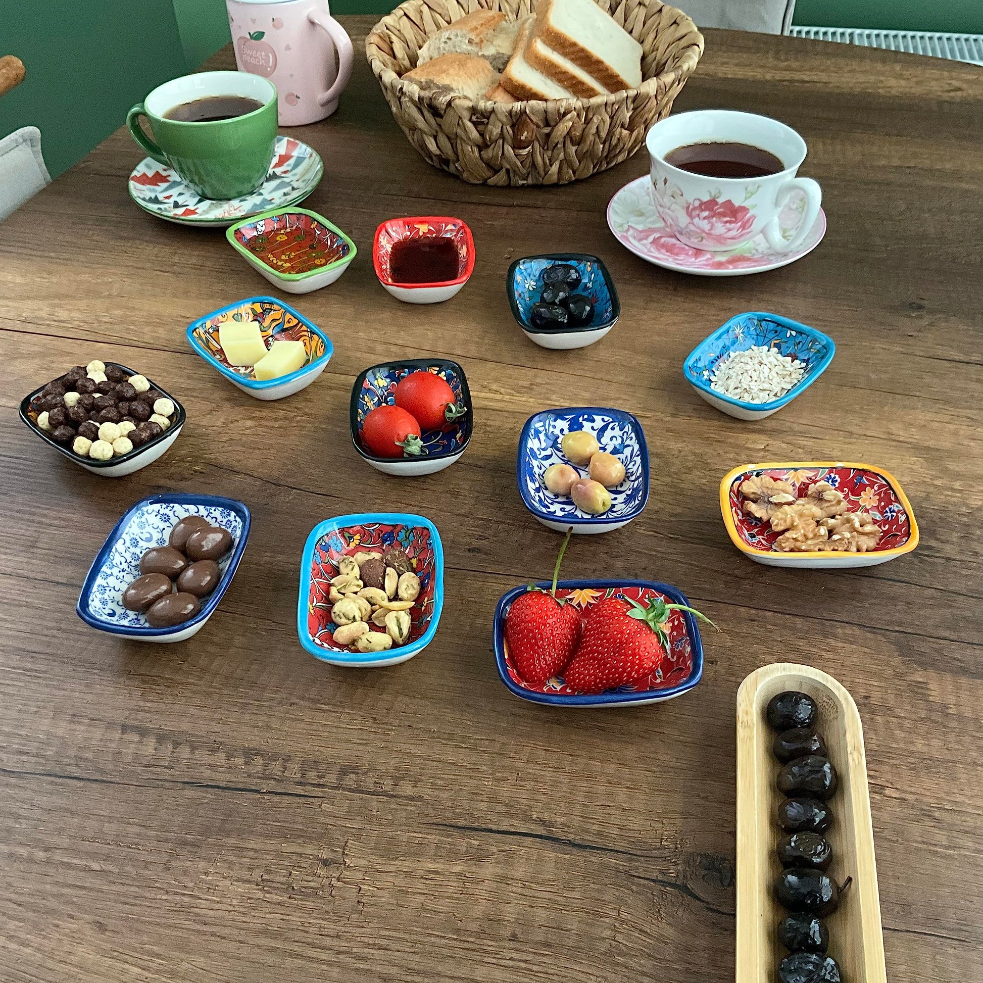 Ayennur Decorative Desing Turkish Ceramic Bowl Set of 6 - Handcrafted Multicolor Small Bowl (Multi 8)