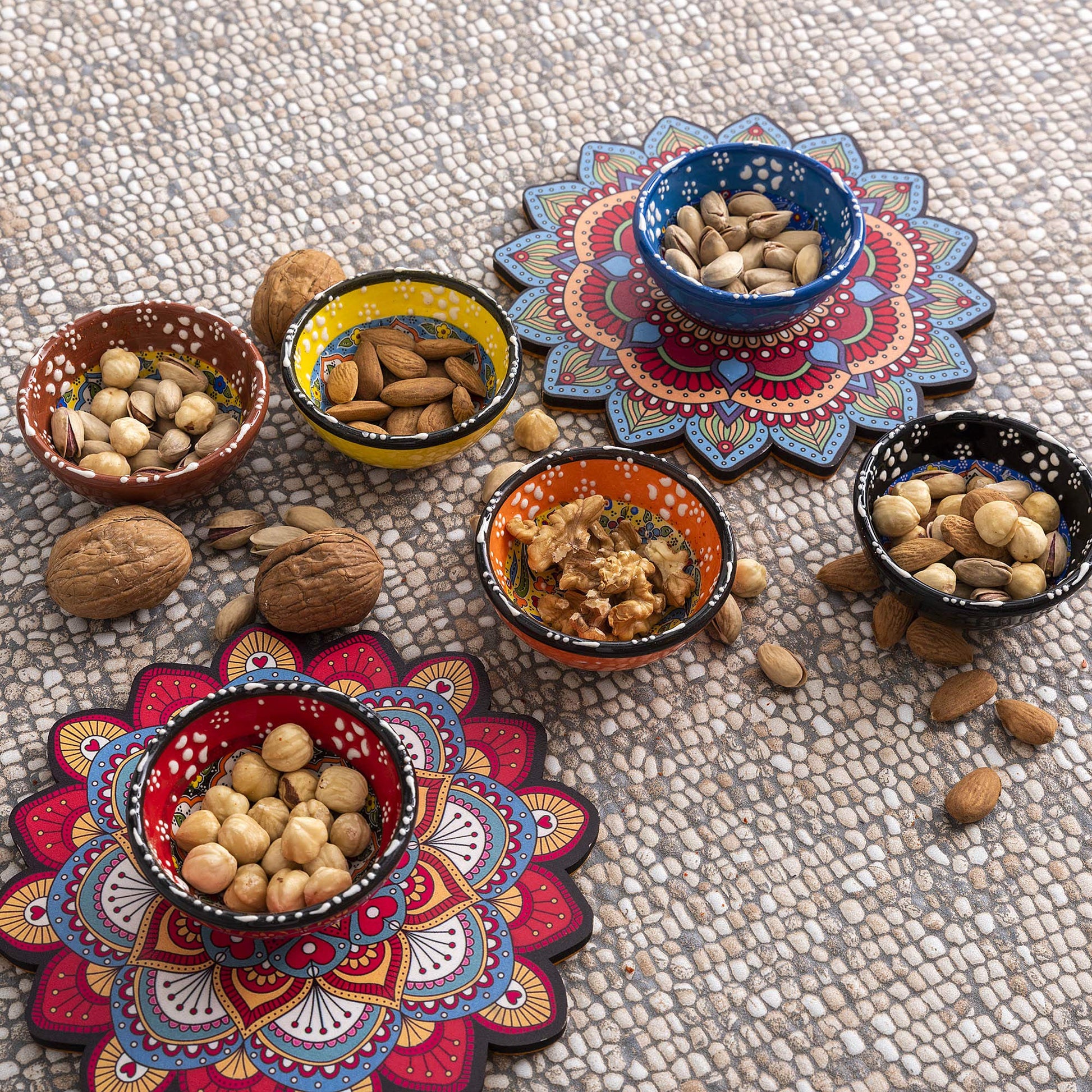 - This special dipping bowls look with hand painted colors will make your table look amazing.The patterns on it were meticulously processed. It protects the color vitality and texture for many years. A stylish product that you can give to your loved ones and friends.Also please consider that all pieces are handmade so they slighty differ from each other.