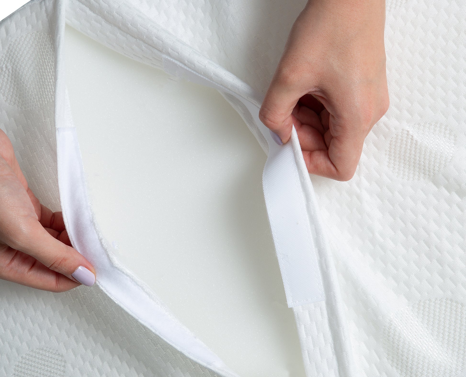 Adjusting the position of lying, it helps preveting the escape of stomach acid into the esophagus. Custom design punched sponge structure gives the admissionto breathe while lying facedown. There is no therapeutic properties of this product, are used as auxiliary. The product has the smell of foam the smell will disappear after a few days unpacked. The removable cover is washable in the washmachine. It can bu used as a safe sleeping bag with adjustable.