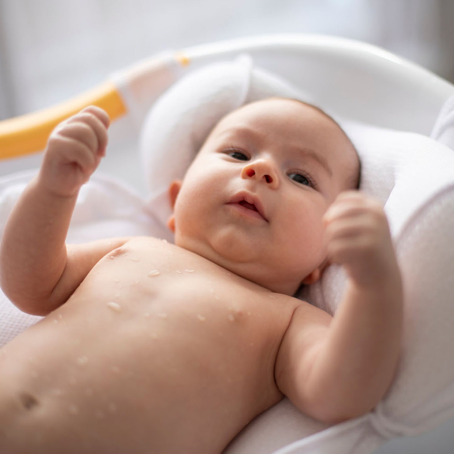 Stretch the foam (styrofoam) filled net into your baby's bathtub.