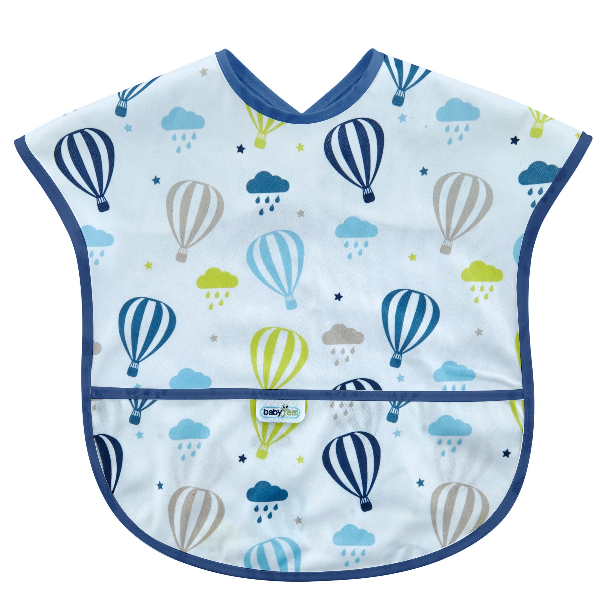 Easy wearing and take off designed BLW Bib with touch and close fastener, catches utensils, cups, food before it hits the dirty floor.