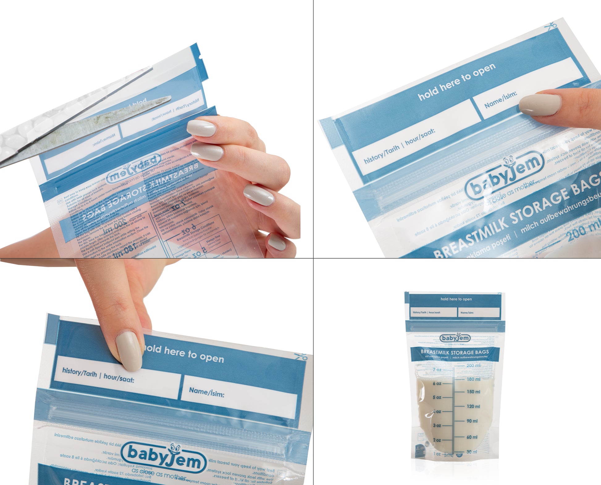 The Babyjem milk storage bag offers an effective solution for preserving breast milk in optimal conditions. Equipped with a leak-proof lock system, it is compatible with all types of freezers. Storage guidelines recommend consumption within 6 to 8 hours at room temperature, up to 72 hours refrigerated, and 3 to 6 months frozen, allowing you to safely extend your milk supply. To use, remove the safety seal, carefully open the zipper, and fill the bag. Expel air by pressing the bag just above the milk before sealing securely. Label the bag using the designated writing area, then close the lock firmly—repeating to ensure a secure seal. Bags can be stored vertically or horizontally; the latter simplifies thawing.