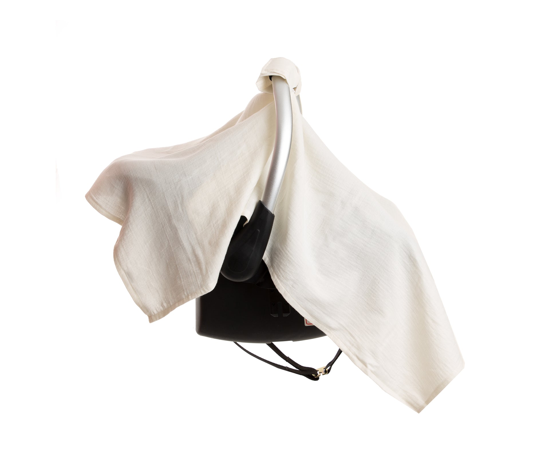 It is made of thin and sparsely woven muslin. It is soft, durable, practical and long-lasting. You can also use the cover as a swaddle with its air-breathing feature. It can be used as a thin blanket, an absorbent towel, or a changing mat. It protects your baby from external factors such as sun, wind, flies and bees when using a stroller. It does not cause sweating. It can be washed in the washing machine. Made from 100% cotton.