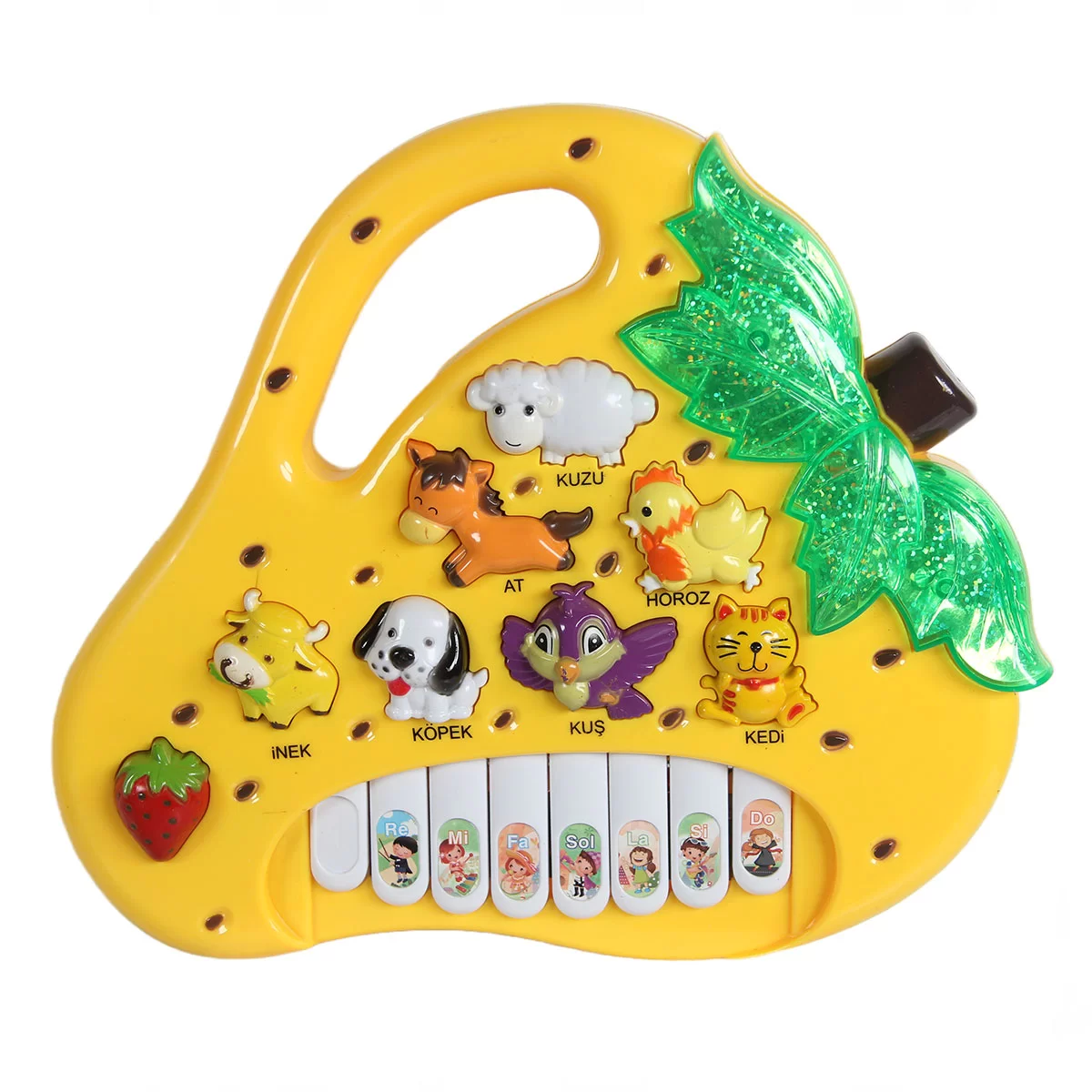 Boxed Battery-Operated Strawberry Piano Let's learn Turkish while having fun with music It helps them recognize animals and fruits with sounds. It works with 3 AA batteries. (Batteries are not included.) IMPORTANT NOTE: The product has 2 different models. The price is for a single product. Please specify your model preference in your order. If you do not specify a preference, any model from stock will be sent. If you still want to change the model of the received product, the round-trip shipping fee for the change will be paid by you. Age Group: 12+ Months Barcode: 8898880010170 Item No: FAB. (PR-22) Box Dimensions: 27 x 24.5 x 7 cm. Desi Value: 2