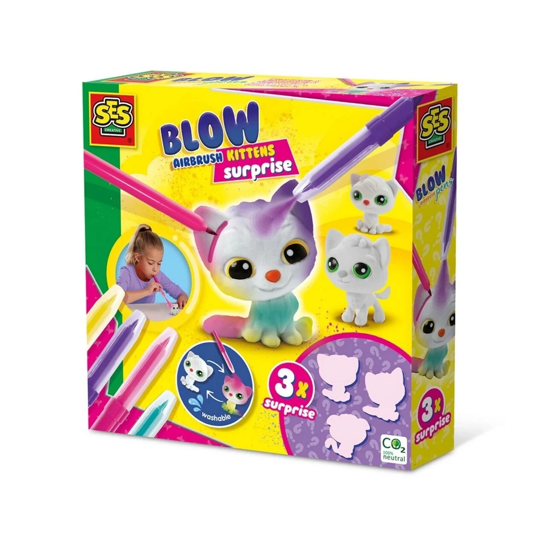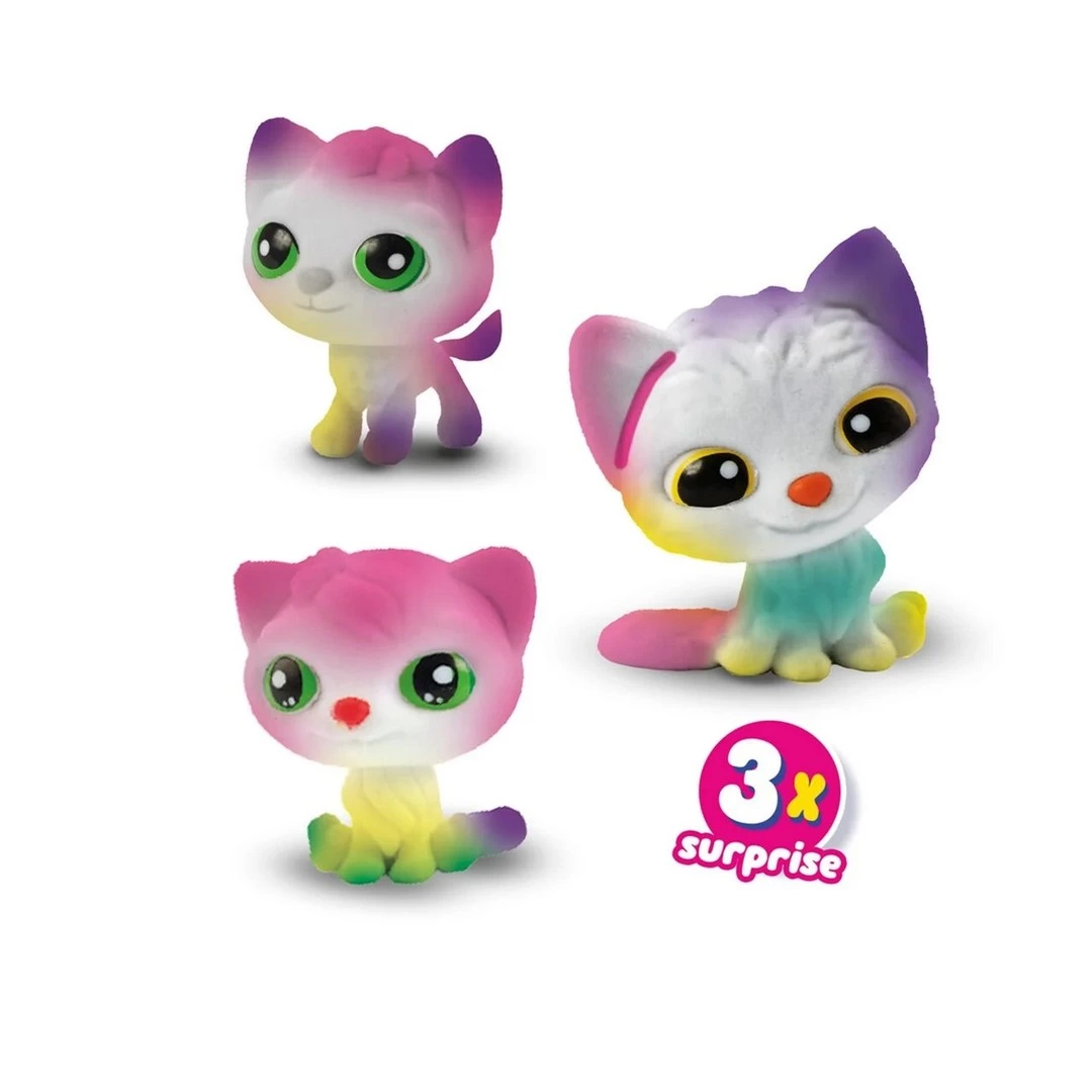 3 surprise kittens with soft, white fur that you can cheerfully decorate with colorful airbrush pens!