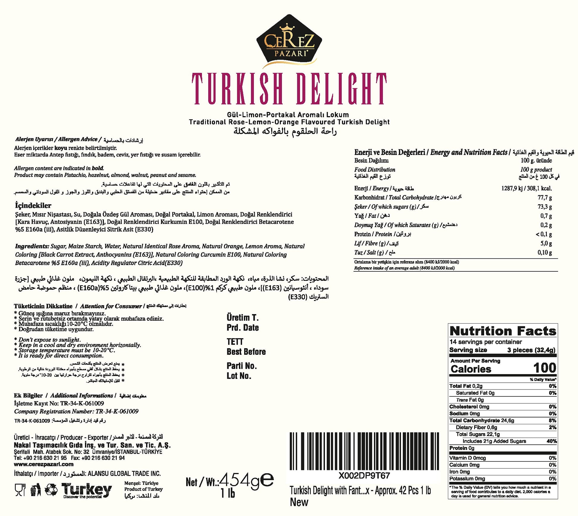 - ABOUT CEREZ PAZARI: We are a family owned & one of the biggest gourmet food provider of luxury hotels & restaurants in Turkey. We are not a 3rd party re-seller, we are the manufacturer of Turkish delight and have a U.S. based company. We are sure you're going to love these soft candy snacks for giving you an energy boost!