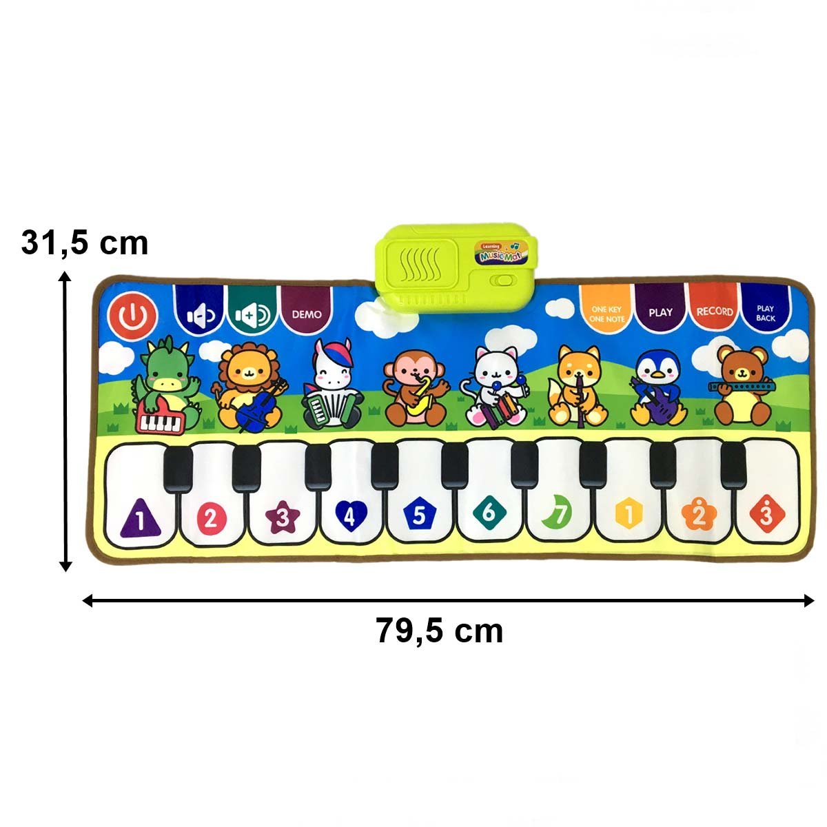 Cheerful Colorful Piano Carpet 10 Touch Control Keys 8 Different Instrument Sounds Demo Mode, Demo Music Volume Adjustment Keys Recording and Playback Feature Beneficial for Auditory and Visual Development. Improves Hand and Eye Coordination. Product Dimensions Approx.: 80 x 30 cm. The product works with 3 AA batteries. Batteries are not included. Age Group: 3+ Years Barcode: 8698555791232 Item No: 757-01B Box Dimensions: 38.5 x 19 x 5.5 cm. Desi Value: 2