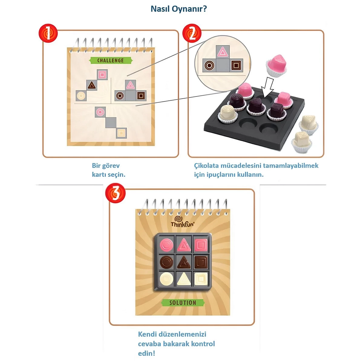 Chocolate Fix Use the clues to place all nine chocolate pieces in their correct positions on the tray. Similar to Sudoku, you must examine all the clues on the challenge card before you can make your move. You'll feel your confidence increase as you complete each challenge in this fun logic game. Moreover, you can easily carry it wherever you want with the carrying bag! Box Dimensions: 15 x 15 x 1 cm. Age Group: 8+