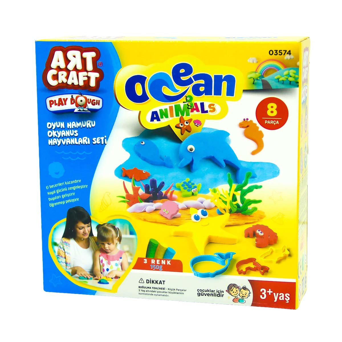 Play Dough Ocean Animals Set This set contributes to the development of your child's manual dexterity and imagination. Your child will be able to easily make the shapes they want with various molds. The set consists of 8 pieces. 3 colors 150gr Age Group: 3+ Years Barcode: 8693830035742 Item No: 03574 Box Dimensions: 17 x 16.5 x 5.5 cm. Decimal Value: 1