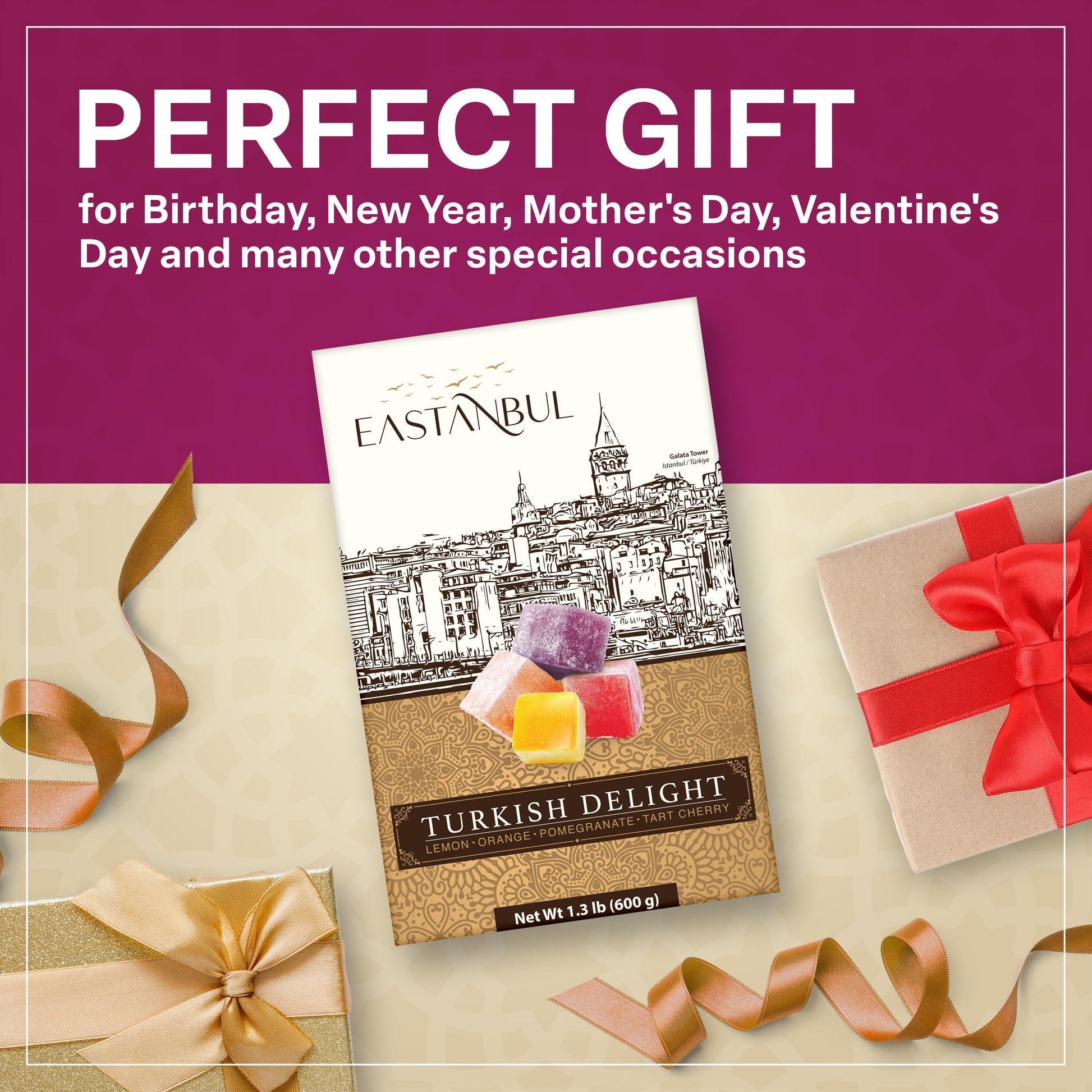 - EDIBLE GIFTS FOR BELOVED ONES: If you are looking for an International Candy Box or a foreign candy snack box as a gift, Turkish Delights, aka Turkish Lokum Candy, could be an excellent option for almost all occasions such as celebrations, birthdays, and even funerals. Goes impeccable with hot beverages so ideal for coffee breaks tea parties and all after dinner gatherings. Perfect stocking filler for holiday treats such as Eid Baskets or Easter Delights
