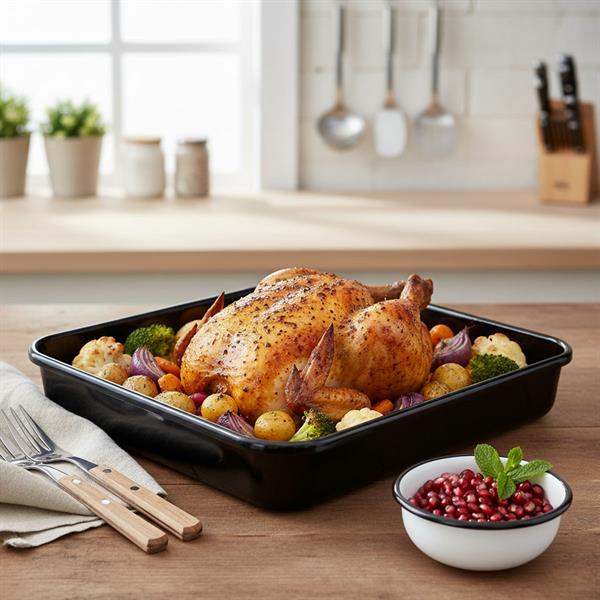 The Address of Elegance and Functionality in the Kitchen: Emayra Enamel Rectangular Baking Tray Black
