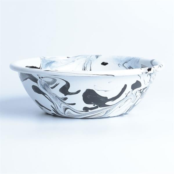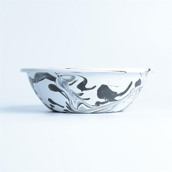 Emayra Enamel Salad Bowl 20 cm | Marbling Pattern Black and White
