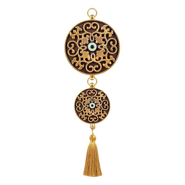 Emayra Double Evil Eye Beaded Wall Decoration Brown | Floral Pattern