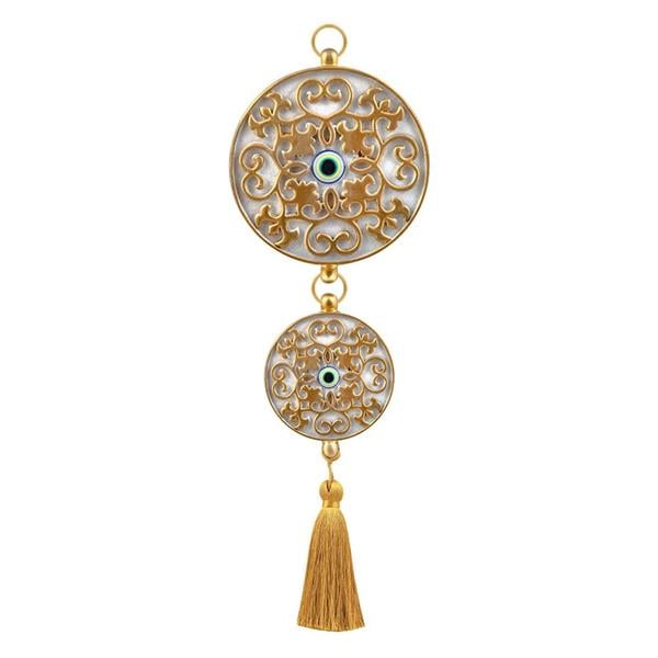 Emayra Double Evil Eye Beaded Wall Decoration in Cream Gold | Floral Pattern