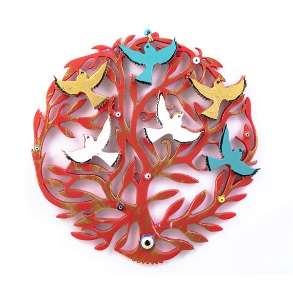 Emayra Evil Eye Beaded Tree of Life Wall Decoration Red | Symbol of Abundance and Luck