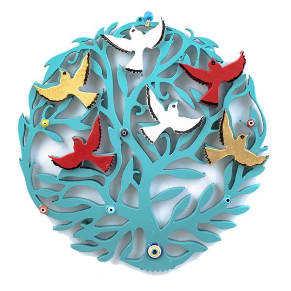 Emayra Tree of Life Wall Hanging with Evil Eye Beads, Turquoise | Symbol of Abundance and Luck