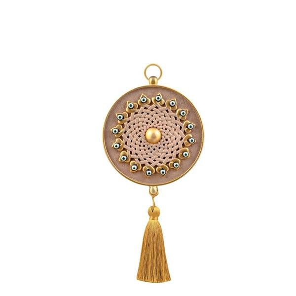 Emayra Single Evil Eye Beaded Wall Ornament Cappuccino | Traditional Pattern