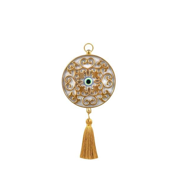 Emayra Single Evil Eye Beaded Wall Decoration Cream Gold | Floral Pattern