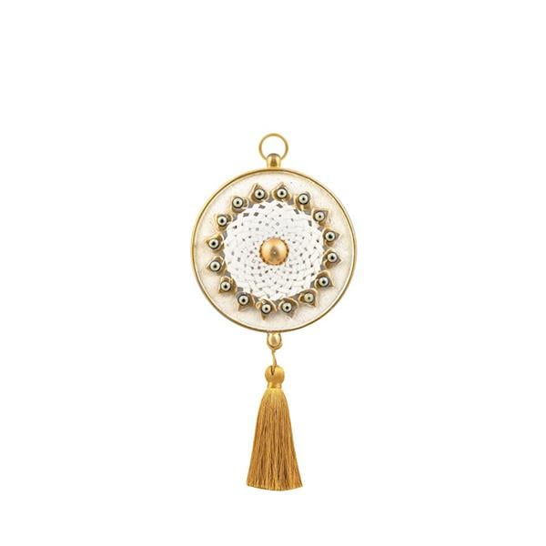 Emayra Single Evil Eye Beaded Wall Decoration in Cream Gold | Traditional Pattern