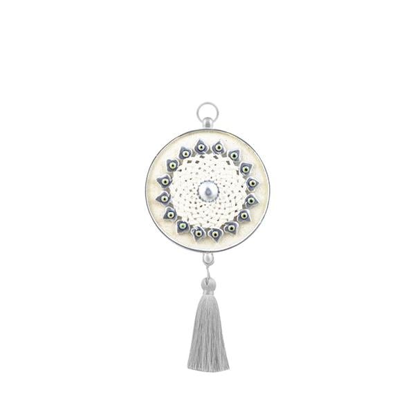 Emayra Single Evil Eye Beaded Wall Ornament Cream Silver | Traditional Pattern
