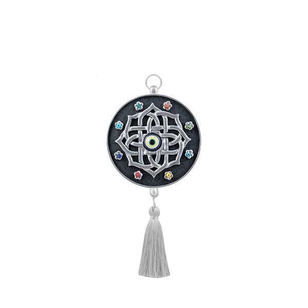 Emayra Single Evil Eye Beaded Wall Ornament Black Silver | Mandala Pattern