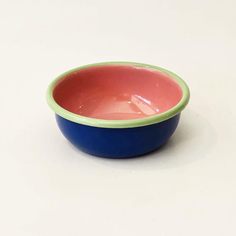 Enamel 12 cm Bowl Cobalt Cord Green Diameter: 12 cm Height: 4.5 cm Capacity: 450 ml Color: Outer Cobalt Inner Pink Cord Nile Green Material: Sheet steel / enamel