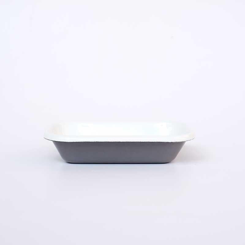Enamel Appetizer Plate Gray 16 cm Size: 16 x 11 x 4 cm Color: Outside gray, inside and rim white Material: Sheet steel / enamel