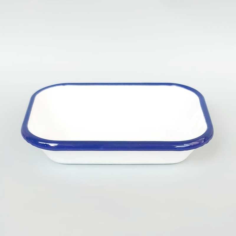 Enamel Appetizer Plate Navy Blue Band 16 cm Measurement: 16 x 11 x 4 cm Color: Inside and outside white - edge band navy blue Material: Sheet steel / enamel