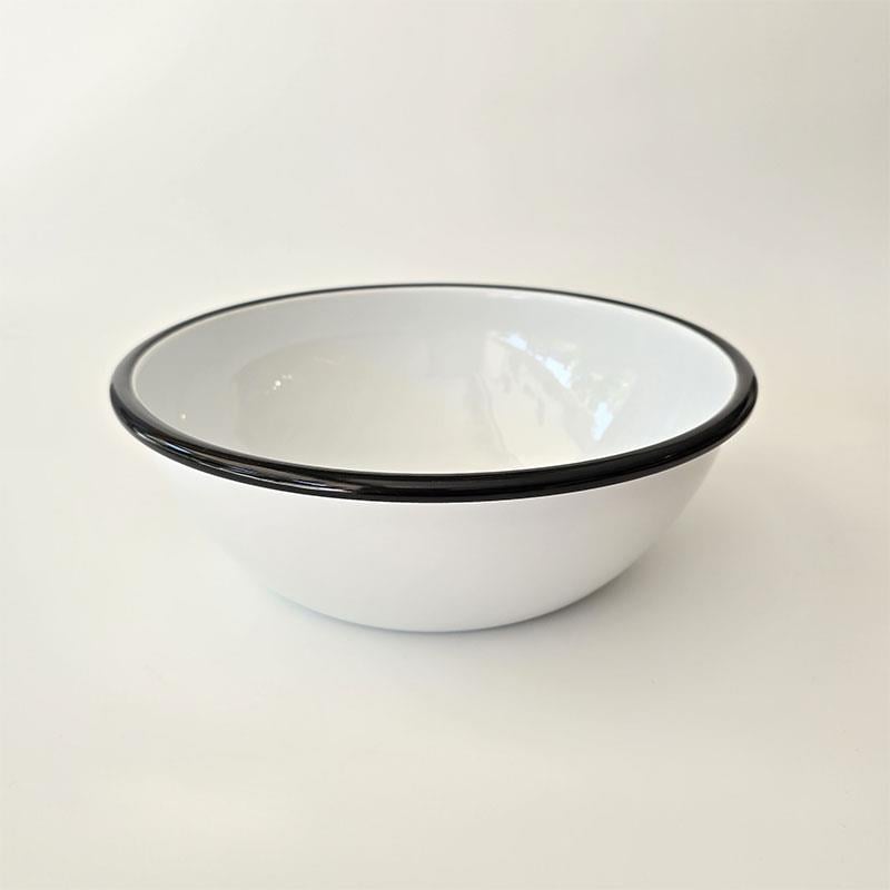 Enamel Bowl 26 cm White Cord Black Diameter: 26 cm Height: 9 cm Capacity: 2.5 Lt. Color: Inside Outside White Cord Black Material: Sheet Steel / Enamel Enamel Bowl 26 cm White Cord Black Usage Features 1 - Suitable for home and business use. 2 - It is suitable for service and presentation with its ideal size for outdoor use. 3 - It is protected against bacterial growth thanks to its smooth structure. 4 - Resistant to cuts and scratches. 5 - Easy to clean - dishwasher safe. /> 6 - Recyclable. 7 - It is not suitable for microwave use since there is steel sheet under the coating. Enamel Bowl 26 cm White Cord Black is the most frequently used size among bowls due to its ideal dimensions. It is the ideal size for muesli, yogurt, snacks, fruit, desserts and single-person salads and similar presentations. You can also choose enamel bowls for your baked goods, soups and similar hot services due to their neutral and healthy smooth structure. Enamel bowls can be stacked on top of each other and do not take up space in your kitchen. Enamel bowls are made of special steel sheet in different wall thicknesses. With its self-curved structure, which we call corded, it is extremely healthy and is especially preferred for businesses. Enamel bowls can be used on induction hobs, direct heat and in the oven when necessary, as well as in the deep freeze and can be washed in the dishwasher. In these times when smaller living spaces are adopted and hygiene is at the forefront, this cute single-person enamel salad bowl will grace your tables for a lifetime with its timeless use. they can decorate. Enamel products, where their quality and healthy structures are at the forefront, can also be an extremely nice gift option for your loved ones. They are ideal for breakfast, serving small snacks, serving fruit and serving salads. Enamel - A natural material born from fire, resistant to corrosion and as pure as glass, unaffected by time and atmospheric conditions, and can be shaped in a wide variety of colors and is always recyclable. Porcelain enamel is an inorganic and glassy coating used on metals for protective, functional and decorative purposes. Care and Use of Enamel Bowls - Enamel bowls can be washed in the dishwasher and by hand. To prevent water stains and the creation of a humid environment, make sure it is dried well after washing. - If there are any stains, adding a little vinegar to warm water and rubbing with a soft cloth will be sufficient. - We recommend washing with gel dishwashing detergents and a dishwashing sponge. - Black lines that form on enamel bowls are generally metal corrosion of stainless steel cutlery and knives. They can be removed by rubbing with a mild dishwashing gel. Is it healthy to use enamel? - Since steel sheet and glass (enamel), which are suitable for food and enamel coating, form a smooth structure and are cooked at a temperature of approximately 800 ° C, you can serve all your foods in enamel bowls with peace of mind. And if possible, you can even serve your children, whose health is important to all of us, their meals with these extremely durable and healthy enamel bowls. Enamel Bowl 26 cm White Cord Black - Enamel World - Bowls