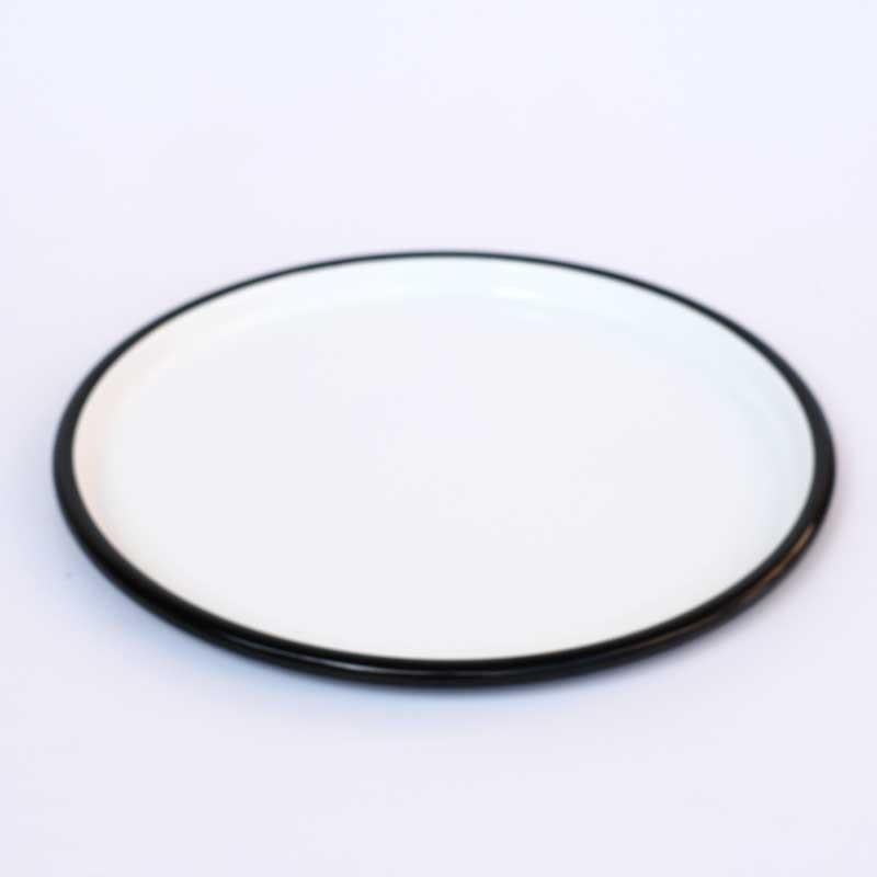 Enamel Pizza Tray No. 28 Gray Measurement: 28x 1.5cm Color: Interior white, exterior gray, rim black Material: Sheet steel / enamel