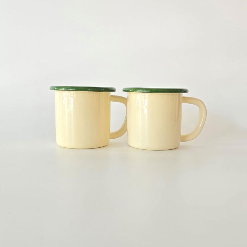 Enamel Small Mug Cream Rim Green Dimensions: 7.5 x 7.5 cm Color: Inside Cream Outside Rim Army Green Capacity: 250 ml. Material: Sheet steel / enamel Enamel Mug Usage Features 1 - Enamel mug is suitable for home and business use. 2 - It is extremely ideal for outdoor use. 3 - Due to its smooth structure, it is protected against bacterial growth. 4 - Resistant to cuts and scratches. 5 - Easy to clean - dishwasher safe. 6 - Recyclable. 7 - Not suitable for microwave use since there is steel sheet under the coating.