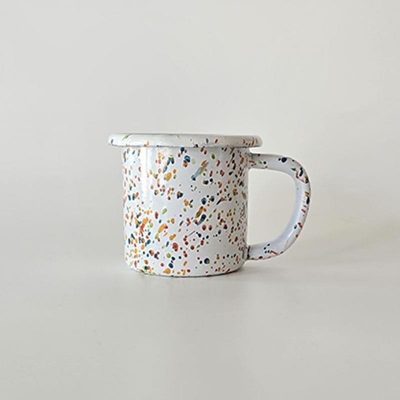 Enamel Sprinkle Pattern Small Mug Inner Blue Dimensions: 7.5 x 7.5 cm Color: Outer Sprinkle Pattern Inner Blue Capacity: 250 ml. Material: Sheet steel / enamel Enamel Mug Usage Features 1 - Enamel mug is suitable for home and business use. 2 - It is extremely ideal for outdoor use. 3 - Due to its smooth structure, it is protected against bacterial growth. 4 - Resistant to cuts and scratches. 5 - Easy to clean - dishwasher safe. 6 - Recyclable. 7 - Not suitable for microwave use since there is steel sheet under the coating.