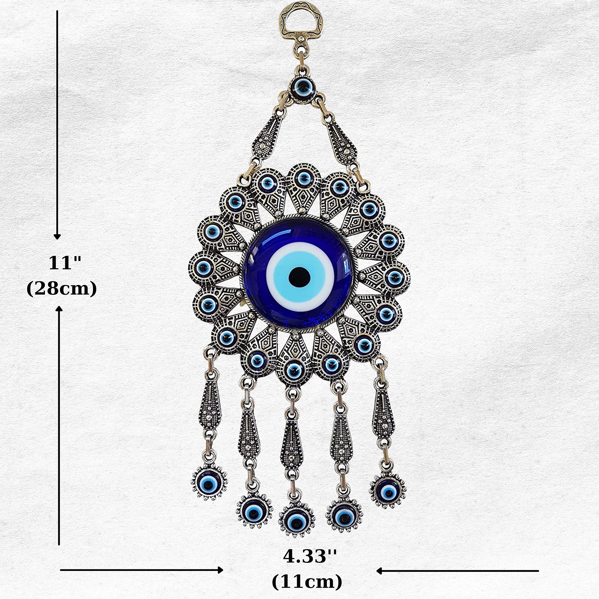 - Size & Color: Length 11'' (28cm) x Width 4.3'' (11cm). Evil eyes are blue and metal parts are silver colour.