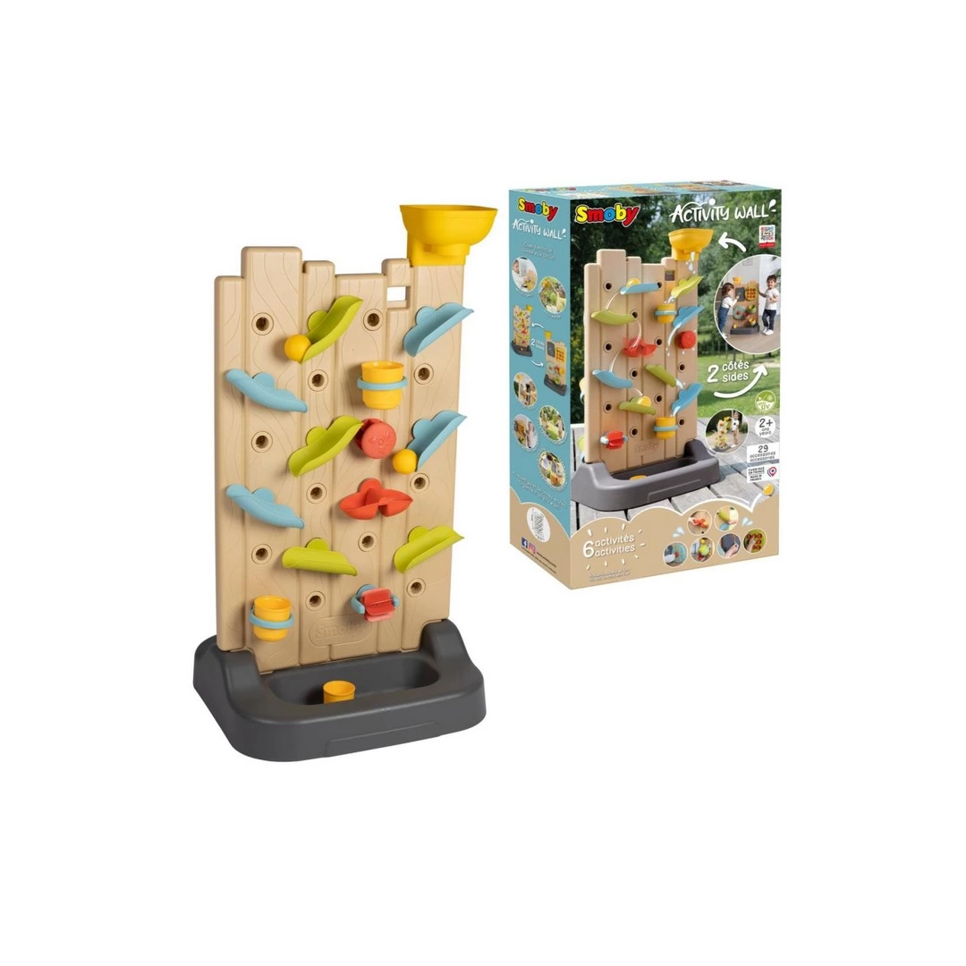 Activity wall from Smoby. Playtime is now much more fun with the double-sided activity wall containing at least 6 activities and 29 accessories.