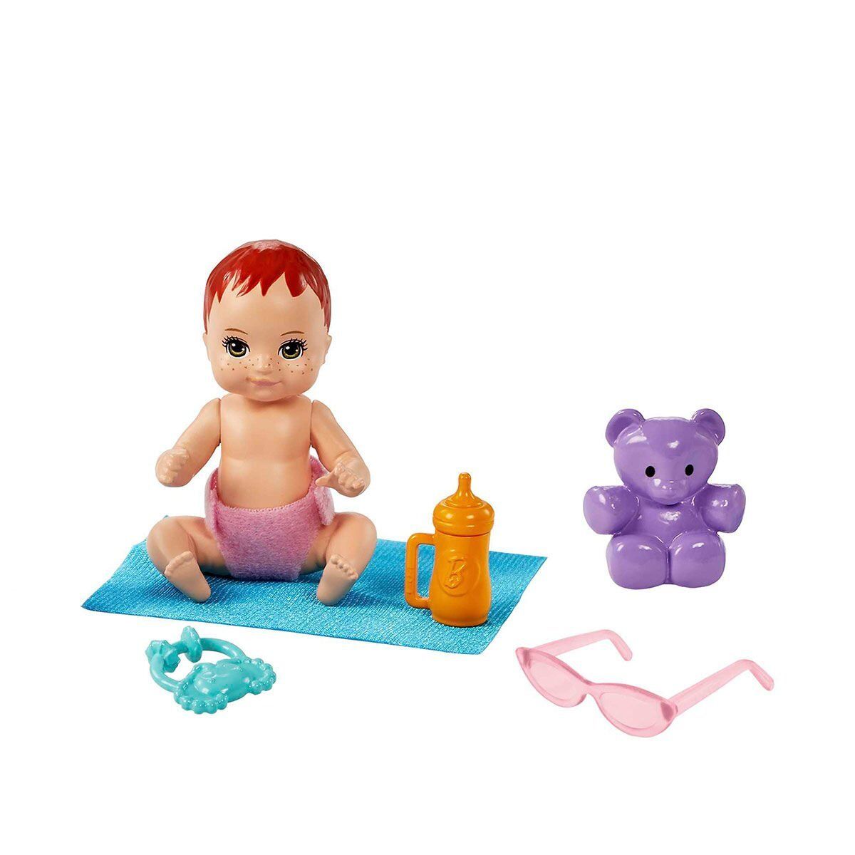 Barbie® Skipper™ Babysitter™ playsets let kids discover their caring side by playing babysitter. In this playset, kids can help babysitter Skipper™ care for the little baby and take her for a ride in the adorable stroller that moves up and down when you push it.