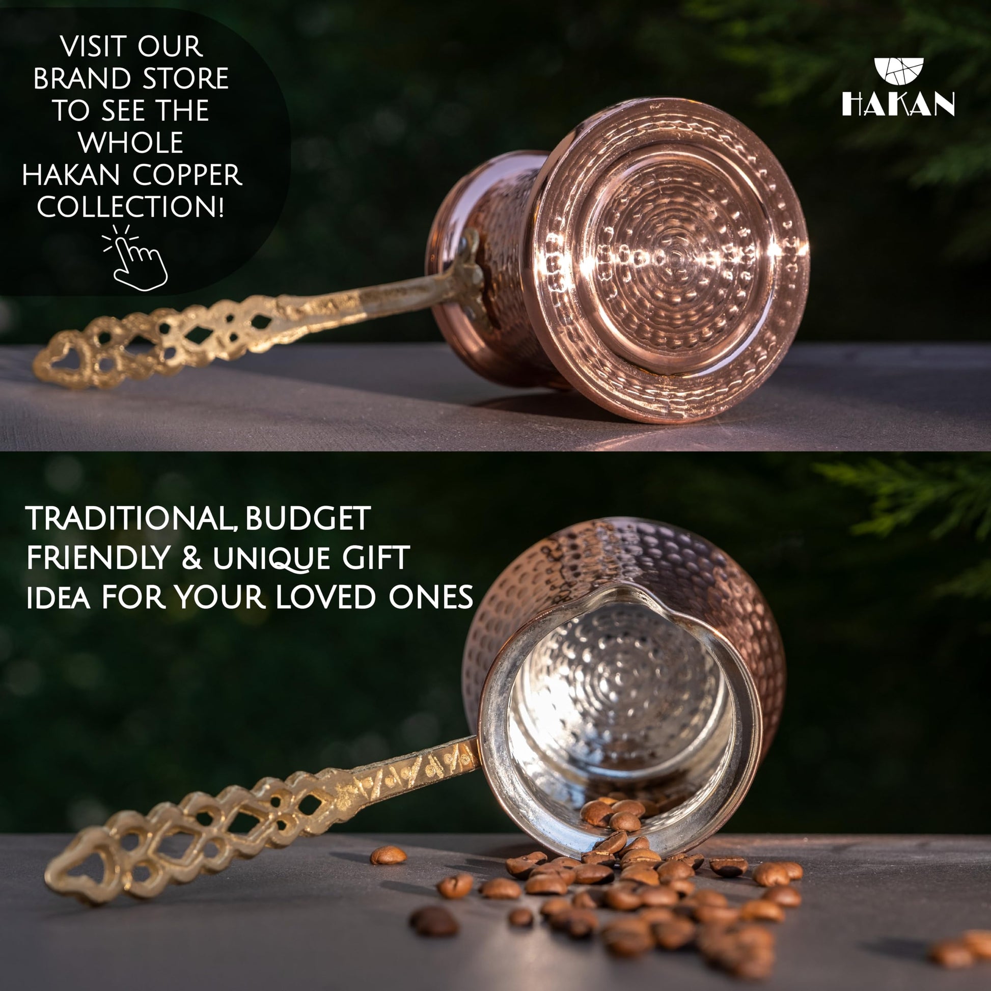 - HANDCRAFTED ELEGANCE & DECOR APPEAL: Each Hakan stove top coffee maker features a handcrafted hammered design and brass handle, offering both traditional charm and functional beauty. A stunning piece of copper kitchen decor, perfect for daily use or display.