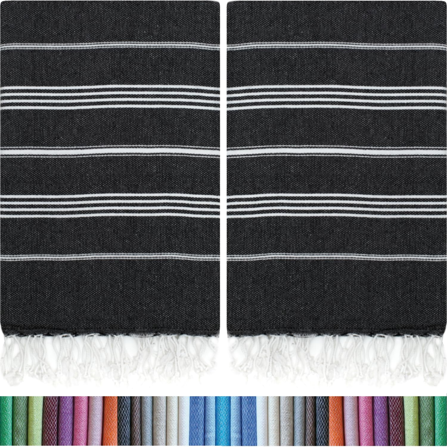 HAVLULAND |Pack of 2| Turkish Beach Towels Oversized 39x71, 100% Turkish Cotton Sand Free Quick Dry Absorbent Towel Travel Blanket for Adults Beach Gift Beach Essentials - Black