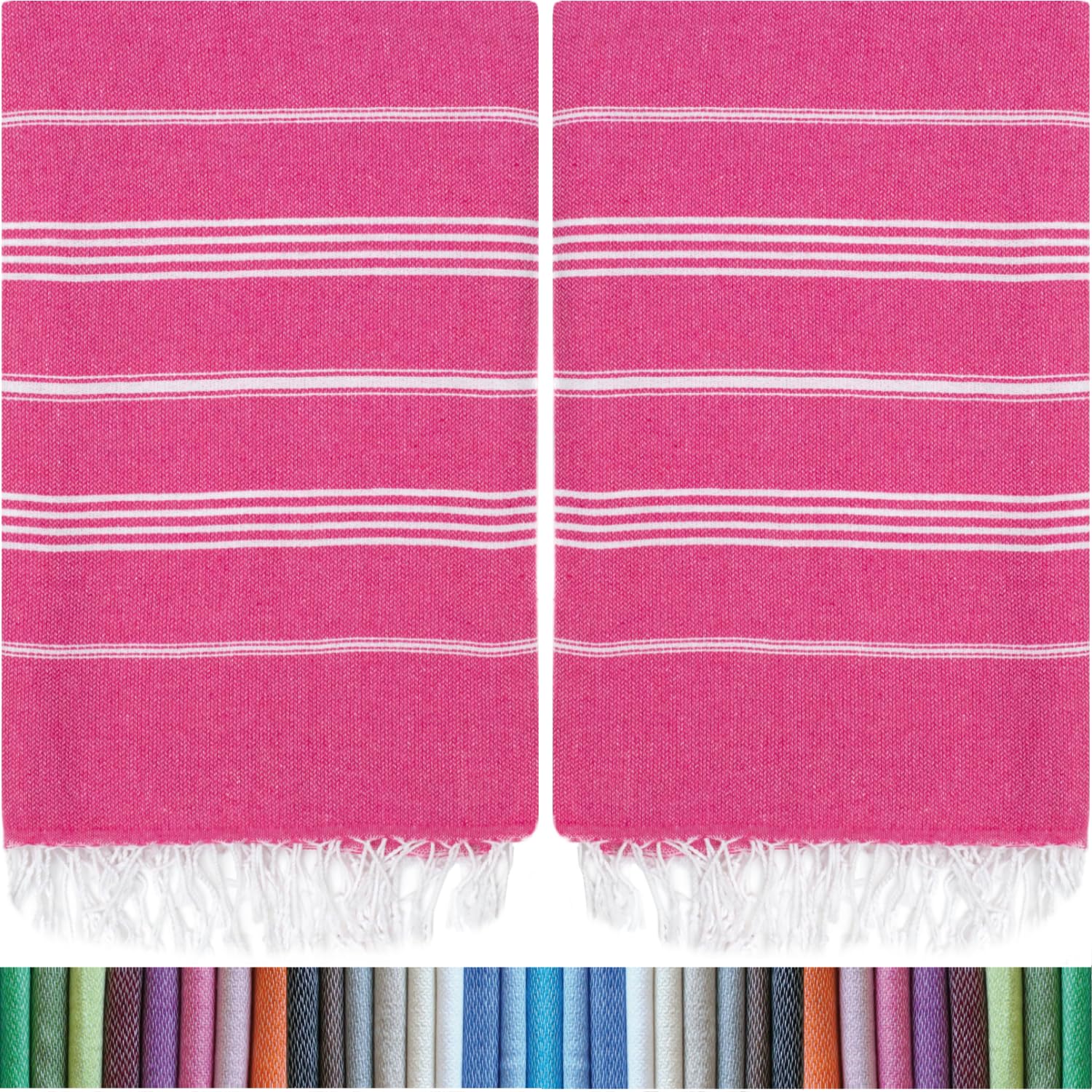 HAVLULAND |Pack of 2| Turkish Beach Towels Oversized 39x71, 100% Turkish Cotton Sand Free Quick Dry Absorbent Towel Travel Blanket for Adults Beach Gift Beach Essentials - Fuchsia