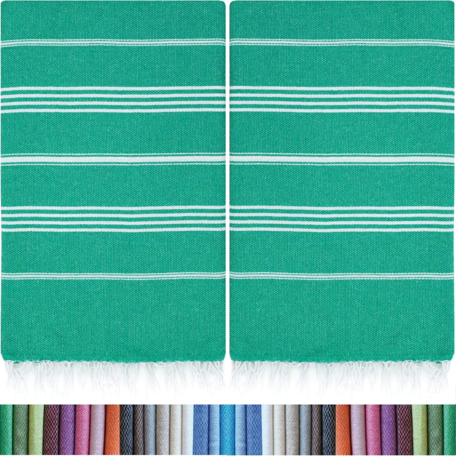 HAVLULAND |Pack of 2| Turkish Beach Towels Oversized 39x71, 100% Turkish Cotton Sand Free Quick Dry Absorbent Towel Travel Blanket for Adults Beach Gift Beach Essentials - Green